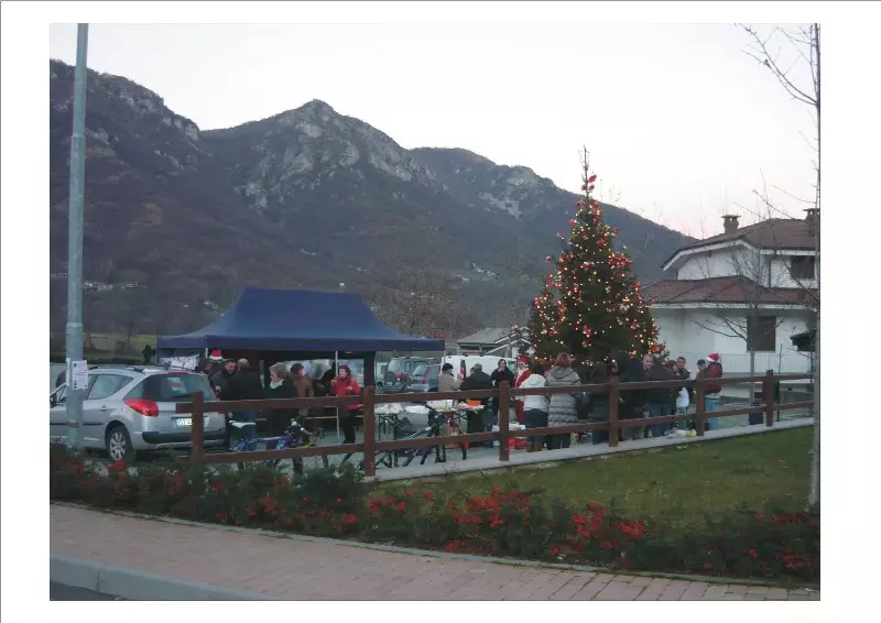 Il grande freddo ha consigliato agli organizzatori un’accensione anticipata del grande albero di Natale posizionato nella nuova Piazza Alessandro Negri a Robella.
