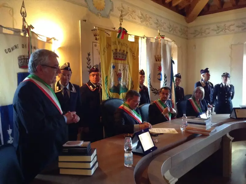 L'atto è stato firmato nella sala consiliare del municipio dal sindaco di Pastrengo Mario Rizzi, promotore dell'iniziativa, e dai suoi omologhi di Sanfront, Roberto Moine e Fiesole, Fabio Incantasciato e dal vice sindaco di Fiumicino Anna Maria Anselmi che ha sostituito il sindaco Esterino Monti impegnato in Consiglio comunale.