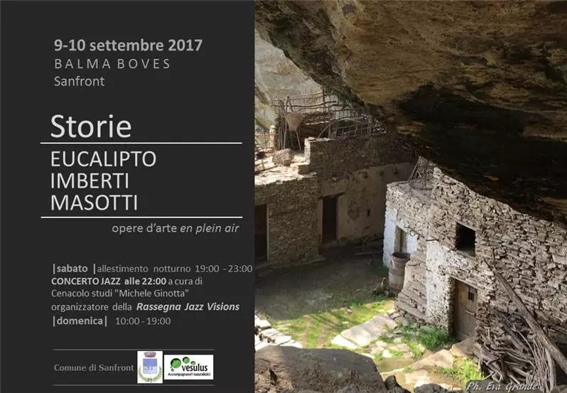 Il 9 e 10 settembre prossimi, nella splendida cornice di Balma Boves a Sanfront è previsto un incontro singolare tra musica, arte, natura, architettura ed aspetti etnografici, il tutto raccolto in una parola chiave: STORIE. E’ questo, infatti, il titolo scelto per rappresentare un’iniziativa, voluta dall'Amministrazione Comunale di Sanfront e dall’Associazione Vesulus che gestisce l’area museale e che vedrà riuniti vari artisti in un contesto sicuramente ricco di suggestioni particolari non riscontrabili altrove. Il tutto avrà inizio sabato 9 settembre alle ore 19,00 per proseguire sino alle 23,00 con un particolare allestimento notturno. Esporranno dunque le loro opere in plein air tre artisti veramente speciali quali Eucalipto, Imberti e Masotti accompagnati alle 21,00 da un concerto a cura degli organizzatori di Jazz Vision i quali proporranno ai presenti un interessante concerto con i musicisti Alessio Pellegrino (chitarra) e Lorenzo Ascani (basso elettrico). Le opere esposte seguiranno tutto il percorso museale offrendo il meglio della produzione di Germana Eucalipto la sanfrontese “doc” il cui percorso artistico proveniente dalla scultura naturalistica è approdato ad una scultura più intimistica che maggiormente si confà alla sua concezione della vita e del vivere umano. Le opere di Germana Eucalipto sono realizzate mediante l’antica tecnica etrusca del bucchero che risale al VII secolo a. c.. Scrive di lei Teodosio Martucci (artecultura 2001 – Milano):“…scultura moderna, d’impronta quasi concettuale, l’opera di Germana Eucalipto rivela sensibilità plastica e capacità di approfondimento psicologico”. Il processo creativo di Imberti immagina invece la storia, l’arte, la psiche come “pura”. All'origine di ogni immagine e di ogni significato messi in gioco da Imberti vi è il dualismo sessuale che Duchamp con genialità assoluta ha espresso nelle sue opere come forza primaria di insanabile conflittualità. Le sue opere risultano “geniali” in un misto di meccanica e di fantasia che attraggono chi le osserva e che trae da esse emozioni del tutto “personali”. Masotti si esprime invece con colori estremi ed opposti. "l'immagine senza il sentimento è vuota, il sentimento senza l'immagine è cieco" ha sintetizzato Sergio Turtulici riassumendo il concetto in base al quale esprimere e vedere l’arte sono aspetti di un esercizio dello spirito. La mostra proposta si muoverà dunque tra questi confini materiale ed eterei conditi da note di buon jazz e dagli scorci di un ambiente magico, dove si immagina la storia dei tempi passati. Il tutto proseguirà il 10 settembre quando la luce si sostituirà alla suggestione notturna dando ancora ai visitatori l’opportunità di assaporare arte e cultura dalle 10 del mattino sino alle sette di sera quando calerà il sipario su questa iniziativa unica nel suo genere.
