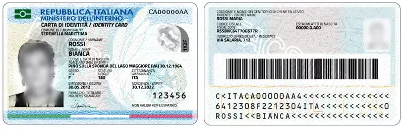 Un supporto in policarbonato personalizzato mediante la tecnica del laser engraving con la foto e i dati del cittadino e corredato da elementi di sicurezza (ologrammi, sfondi di sicurezza, micro scritture, guilloches ecc.);