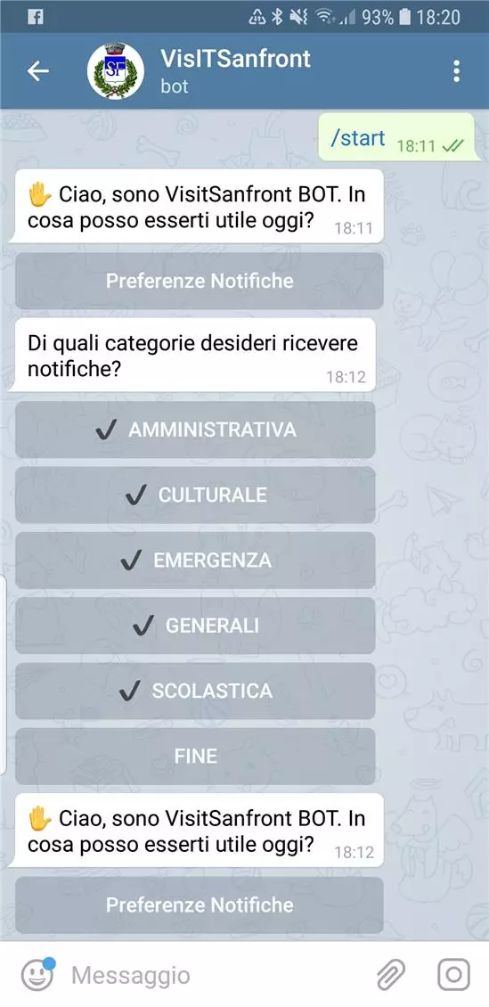 Telegram e i servizi forniti dal Comune di Sanfront attraverso questa applicazione sono gratuiti ed anonimi.