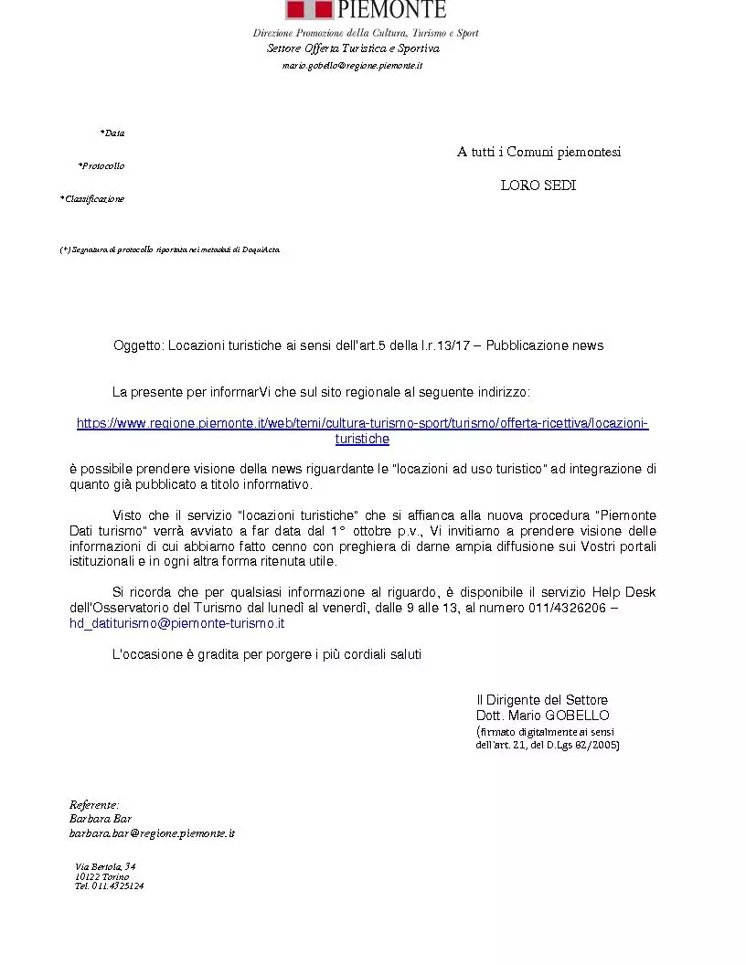 Visto che il servizio “locazioni turistiche” che si affianca alla nuova procedura “Piemonte