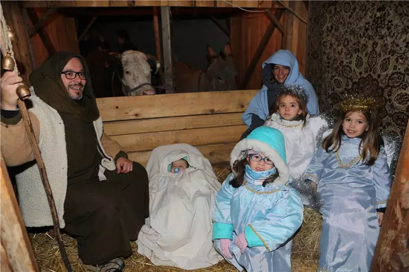 Il tutto si conclude poi nella Piazza Ferrero antistante la chiesa parrocchiale, dove è stata collocata la capanna e dove troveranno posto Gesù bambino (il piccolo Alberto Depetris), la Madonna (Sabrina Martino) e San Giuseppe (Fabrizio Depetris).