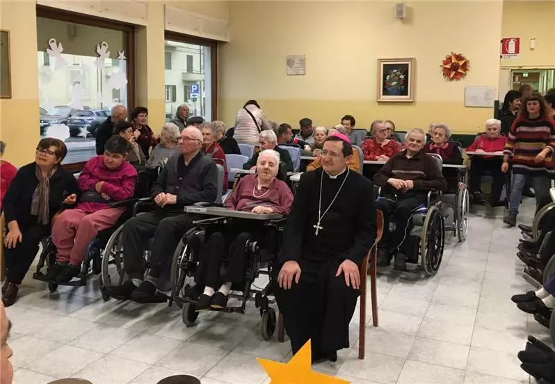 Il Vescovo si è intrattenuto con gli anziani ed i bimbi presenti, che hanno proposto un piccolo saggio natalizio. Mons. Bodo, infine, ha invitato tutti i presenti ad elevare una preghiera alla Madonna perché conceda nuove vocazioni sacerdotali e religiose alla nostra diocesi.