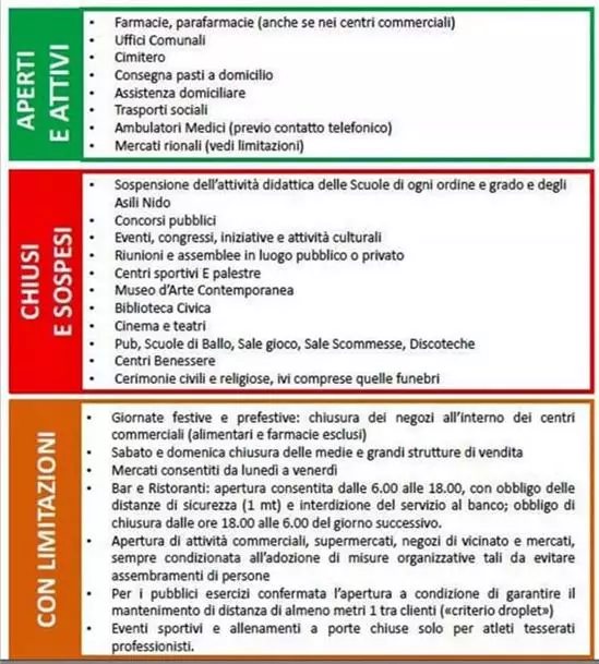 - divieto per chi si trova in quarantena di lasciare la propria abitazione;