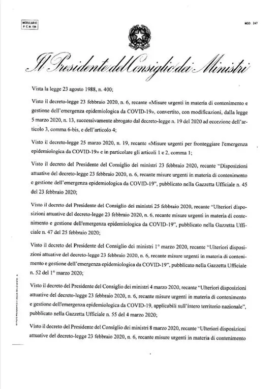 Descrizione Il DPCM del 1 aprile estende le attuali misure di conteniemnto per l'emergenza COVID-19 fino al 13 APRILE 2020