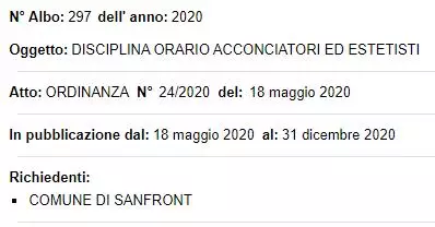 Descrizione Si riporta in allegato l'Ordinanza n. 24/2020 - Prot. n. 1903 relativa alla disciplina dell'orario di apertura per acconciatori ed estetisti