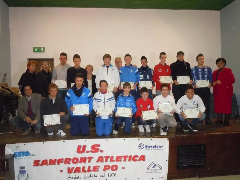 L'amministrazione comunale ha organizzato una premiazione con la consegna di una pergamena di ringraziamento dedicata ai giovani campioni che si sono distinti a Sanfront nel corso del 2011. Erano presenti alla consegna dei riconoscimenti alcune personalità politiche provinciali da Luca Colombatto a Giuseppe Lauria a Giovanna Zetti. Per la Fidal di Cuneo era presente il Presidente Rosy Boaglio che ha premiato la neo campionessa italiana di corsa in montagna Rachele Cremonini dell' US Sanfront Atletica. Gli altri sport richiamati sono stati le Bocce, il calcio e lo judo. Un riconoscimento è toccato anche al mondo della musica ad alcuni giovani che si sono distinti nel corso dell'anno. Nella foto di gruppo i giovani premiati durante la serata nella sala manifestazioni del Comune di Sanfront.