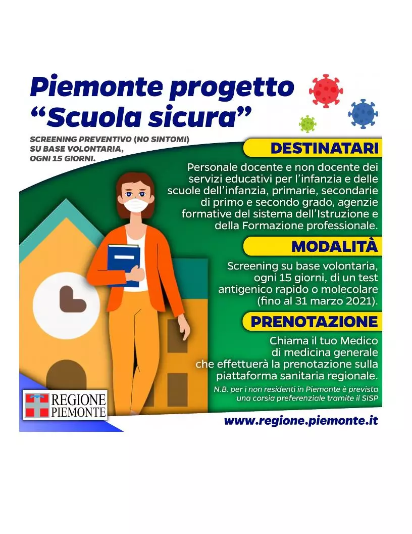 Si pubblicano in allegato 3 info grafiche diffuse dalla Regione Piemonte per informare i cittadini circa la possibilità di accedere a tamponi gratuiti per i seguenti soggetti: