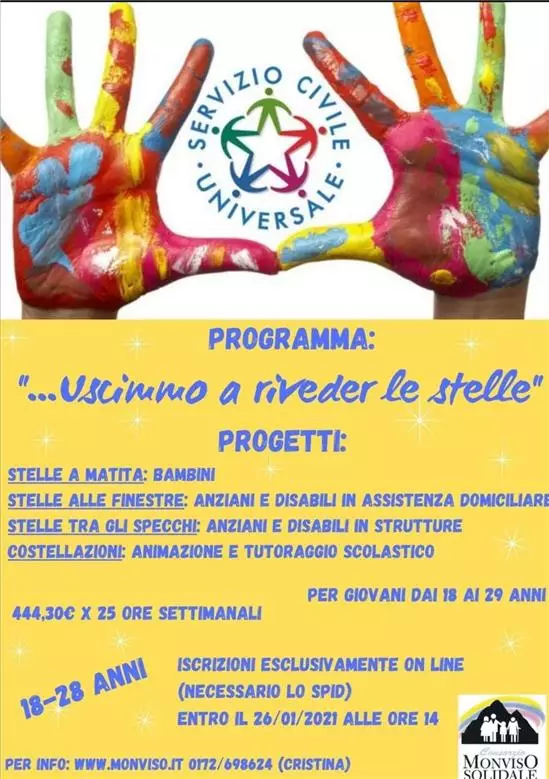 È possibile, per i giovani di età compresa tra 18 e 28 anni, inoltrare la domanda entro il 26.01.2022, per prestare servizio Civile presso uno degli Enti del Territorio.
