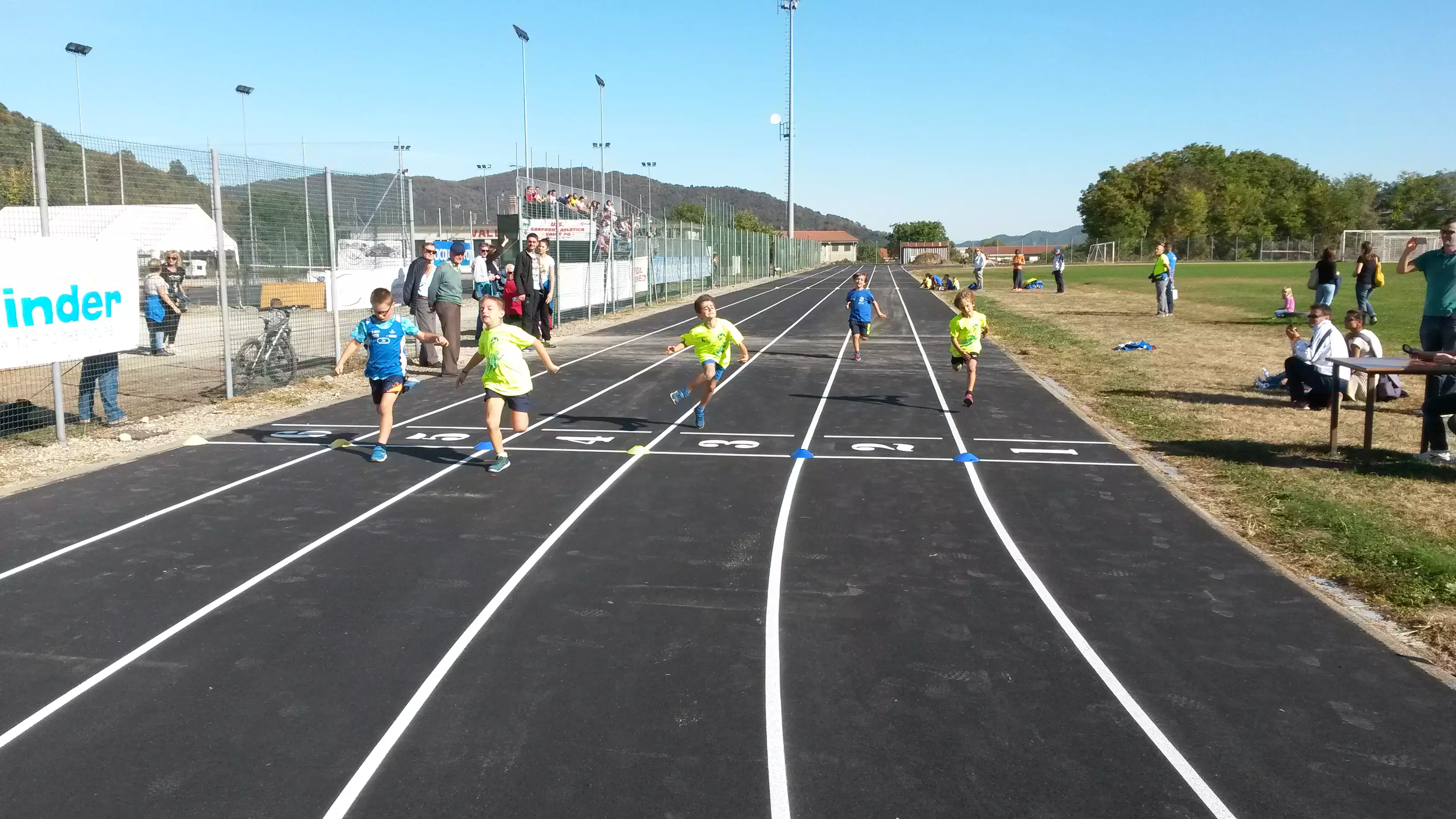 Inoltre è previsto il rifacimento completo del tracciamento della pista di atletica leggera mediante vernice spartitraffico bianca.