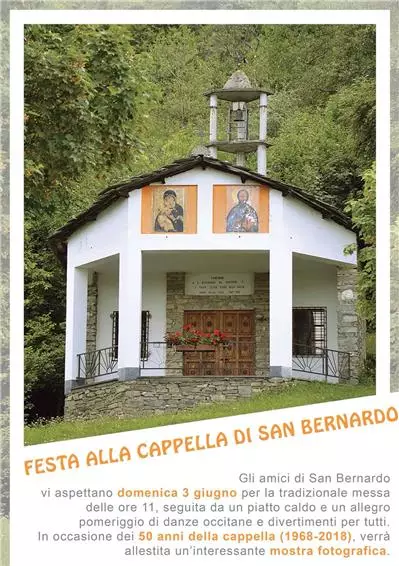 Domenica 3 giugno si è tenuta la festa alla cappella di San Bernardo di Comba Albetta, tradizionale ricorrenza che si arricchisce quest’anno di una coincidenza particolare: quella dei 50 anni della benedizione della nuova cappella. Nel 1968 fu mons. Guido Tonetti, allora amministratore apostolico della diocesi di Saluzzo, a salire fino a San Bernardo per benedire la nuova cappella. La chiesa è dedicata a San Bernardo da Mentone ed alla Madonna. Sulla facciata della nuova cappella è riportata la scritta: "Sanfront a San Bernardo da Mentone e a Maria SS.ma Madre della Chiesa".