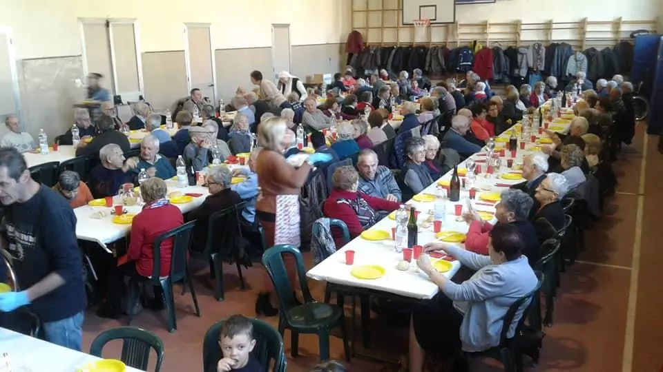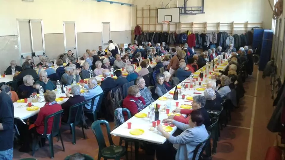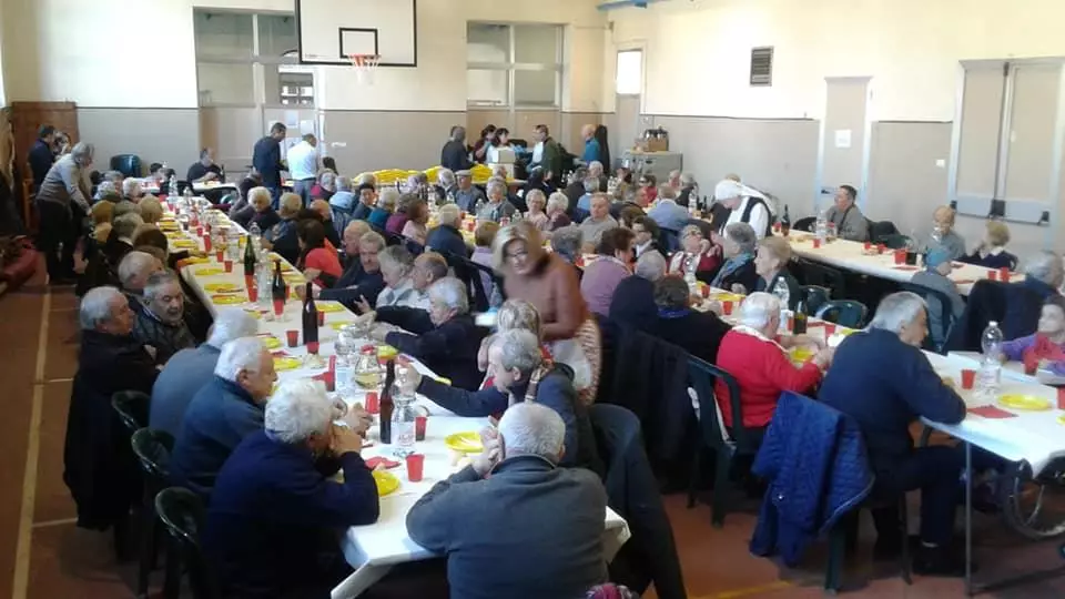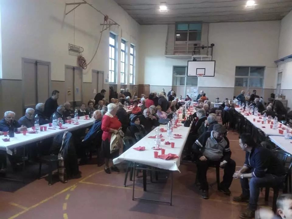 Descrizione Grande partecipazione al pranzo degli anziani organizzato dall'Amministrazione comunale di Sanfront, grazie ai volontari che hanno servito il lauto ed apprezzato pranzo.